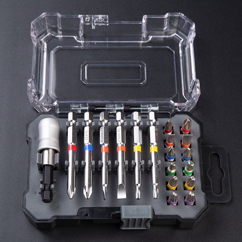 This 19pcs Bits Sets is equipped with a quick release chunk, which can quickly eject and connect new bits, speeding up work efficiency. There are size marks on the surface of the bit for easy use. The bit has high hardness and wear resistance, and has a long service life. There are six bit models in the set, namely PH, PZ, SL, H, and T HT.